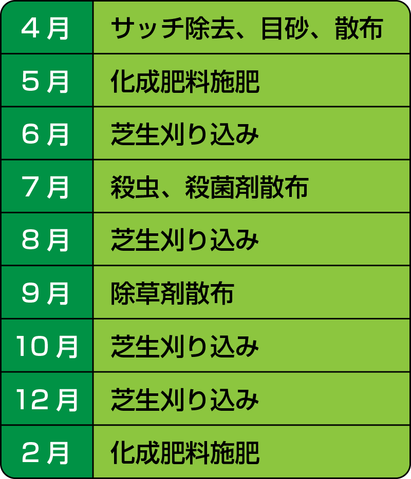主な一年間の芝生管理例