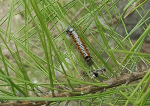 全身褐色で,前ばねに白色の波状帯がある。幼虫は松の葉を食う大害虫でマツケムシと呼ばれ,刺毛には毒がある。日本各地と東アジアに広く分布。